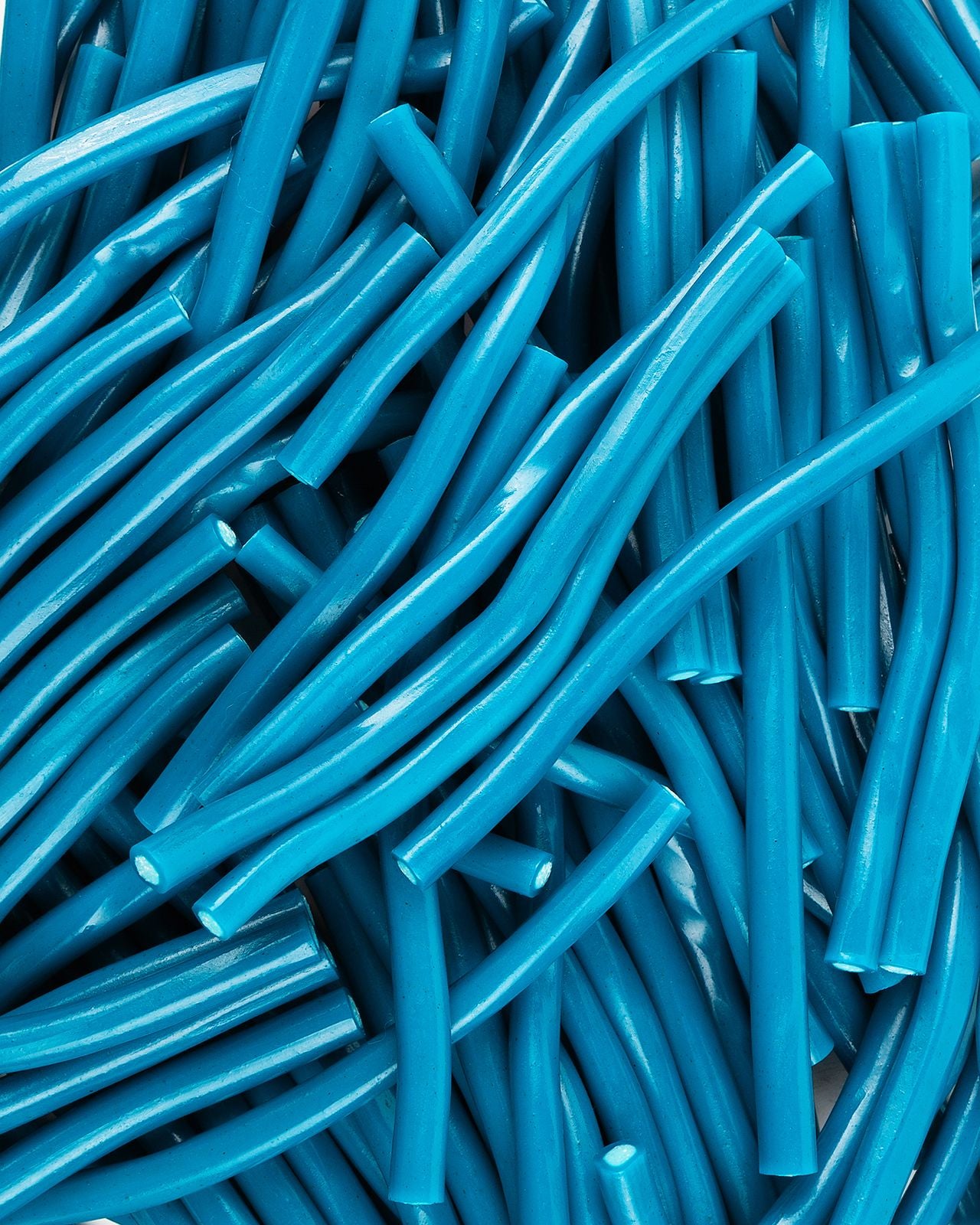Los dulces azules «Balla Balla Stangen Raspberry» son barritas de confitería con un delicioso relleno de vainillina.