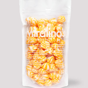 Lezzetli çilek aromalı Miralina's. Torba 500 g helal şekerleme içerir.